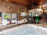 The living spaces are thoughtfully designed with an open-plan lounge featuring a built-in TV unit, a TV room with a cozy fireplace, and a dining area perfect for family gatherings. The entertainment/living area boasts a built-in bar, Jacuzzi, and stacking doors that open to the outdoors, seamlessly connecting indoor and outdoor living. A loft room above the entertainment area offers additional versatile space – perfect as a playroom, gym, or guest suite.
