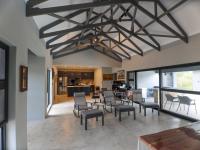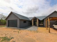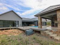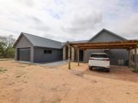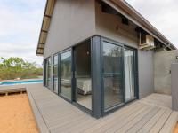 This exceptional 3-bedroom, [hidden] residence offers a modern architectural design seamlessly integrated into the serene Moditlo Nature Reserve. With its sleek dark grey exterior, distinctive metal roof, and stone cladding accents, the property exudes contemporary elegance. Large glass sliding doors throughout ensure an effortless indoor-outdoor flow, inviting the breathtaking bushveld scenery into every living space.