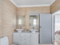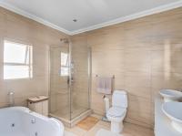 A luxurious main suite, complete with walk-in dressing room, private balcony, and a spa-style bathroom featuring a double vanity, jet bath, shower, and toilet