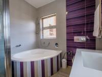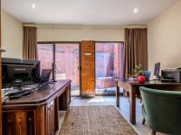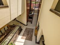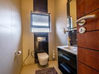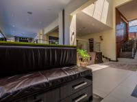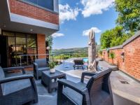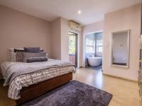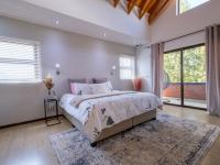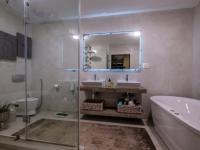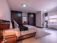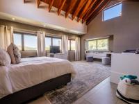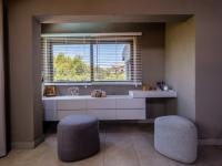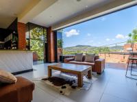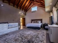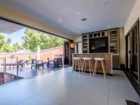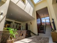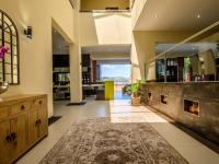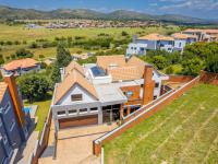 An exquisite masterpiece nestled in a cul-de-sac, offering stunning views of the lush greenbelt where wildlife roams freely. This designer home boasts five en-suite bedrooms, a cinema room, study, and spacious entertainment areas. The open-plan layout seamlessly connects the living, dining, and kitchen areas, leading to a covered patio, braai, swimming pool, and jacuzzi. The main bedroom features glass stacking windows and ample cupboard space. Additional highlights includes a centralised sound system, centralised vacuum system, 2 x 5000 litre water tanks with pressure pump and filter system, 2 solar geysers and staff accommodation.