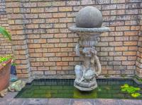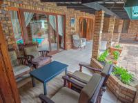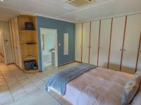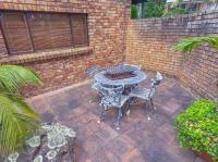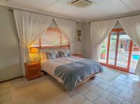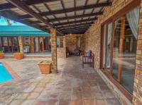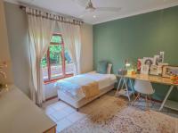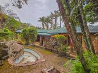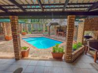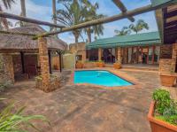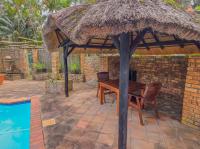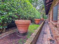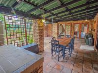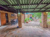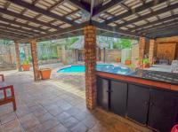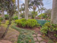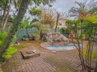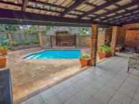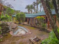 The outdoor areas add significant value to this property. One side features a swimming pool, a thatch lapa ideal for entertaining, and a private seating nook with an outdoor shower. The opposite side includes a second patio with a fish pond and direct access to a private office area with flatlet potential and its own courtyard, making it suitable for a home office or an income-generating flatlet. The garden surrounds the front and side of the property, providing ample space for outdoor [hidden];