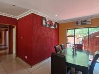 Discover this expansive 5-bedroom, 3-bathroom residence nestled on a generous 1554 sqm erf in the suburban heart of Brackendowns, Alberton. The property immediately impresses with its distinctive two-story house, featuring a vibrant exterior and a modern glass-railed balcony. A large, well-maintained lawn, mature trees, and a spacious red-paved driveway, offering ample parking for up to 7 vehicles, create an inviting first impression, complemented by a charming gated entrance.