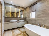 Nestled within the prestigious Boardwalk Manor Estate in Pretoria East, this elegant family home offers the perfect blend of luxury, comfort, and practicality. The residence features four spacious, air-conditioned bedrooms on the upper level — including a main bedroom with a full en-suite bathroom, ample cupboard space, and a built-in safe. In addition to two en-suite bathrooms, there is a shared family bathroom and a guest cloakroom downstairs for convenience. Designed for both relaxation and entertaining, the home boasts a formal lounge and dining room, both enhanced by inviting fireplaces, flowing effortlessly into an indoor braai area that overlooks the sparkling swimming pool and a covered deck with a gas braai — perfect for year-round gatherings. Upstairs, a cozy pajama lounge with a fireplace offers a comfortable family retreat, while a spacious family/TV room provides the ideal setting for informal living. The modern kitchen features quality finishes, ample storage, and a separate scullery, while additional spaces such as a converted gym room, private study, and servant’s quarters/workshop with its own bathroom add versatility and convenience. Practical features include a double garage, three additional parking bays, and a covered carport ideal for a caravan or extra storage. With three JoJo tanks, an inverter, generator, and prepaid electricity, this home ensures uninterrupted comfort and peace of mind. Set within a secure, sought-after estate with beautifully maintained communal spaces, this property epitomizes refined estate living in one of Pretoria’s most desirable [hidden];