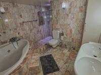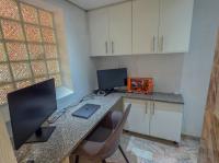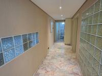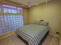 Two additional bedrooms feature built-in cupboards, soft carpeting, and glass bricks that fill the rooms with natural light. The home also includes a private study, perfect for remote work or quiet moments. A second bathroom offers a bath, shower, basin, and toilet, while the guest bathroom includes a basin and toilet.
