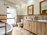 Outdoors, enjoy a spacious, well-maintained garden with a paved open air patio area, perfect for entertaining or quiet enjoyment. The enclosed braai room with built in braai and prep bowl, makes entertaining in all kinds of weather easy and effective. Mature trees and established landscaping provide privacy and shade. For peace of mind, residents benefit from comprehensive security features including an alarm system, electric fencing, security gates, and 24-hour estate security. Modern amenities such as fibre connectivity, a battery inverter, and solar panels contribute to a sustainable and connected lifestyle, all within a wheelchair-friendly environment.