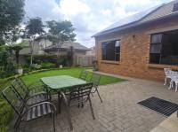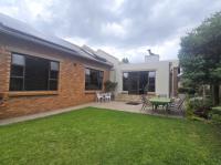 Outdoors, enjoy a spacious, well-maintained garden with a paved open air patio area, perfect for entertaining or quiet enjoyment. The enclosed braai room with built in braai and prep bowl, makes entertaining in all kinds of weather easy and effective. Mature trees and established landscaping provide privacy and shade. For peace of mind, residents benefit from comprehensive security features including an alarm system, electric fencing, security gates, and 24-hour estate security. Modern amenities such as fibre connectivity, a battery inverter, and solar panels contribute to a sustainable and connected lifestyle, all within a wheelchair-friendly environment.