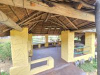 The functional kitchen is equipped with white cabinetry, dark granite-look countertops, an integrated oven and hob, and a practical breakfast bar. Complementing the main living areas, the property includes a dedicated laundry room and staff quarters, ensuring comprehensive utility and suppor