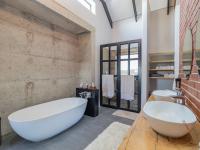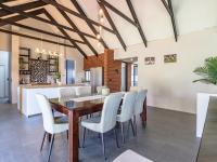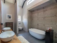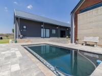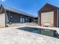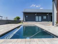 This contemporary 4-bedroom, [hidden] residence is nestled within a secure estate in Berg En Dal, Heidelberg, South Africa, offering scenic views. The property boasts a striking modern architectural design with clean lines, varied materials, and a well-maintained exterior, creating excellent kerb appeal.
