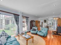 Stacking doors open onto a covered louvred patio, ideal for entertaining, overlooking a beautifully maintained private garden that’s perfect for family relaxation or quiet outdoor enjoyment.