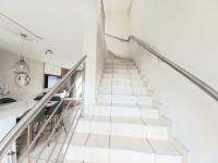Hey there! Check out this awesome modern home nestled in a secure estate in Roseacre, Johannesburg. This place really catches your eye with its sleek white and dark grey facade, giving it a super contemporary vibe. You'll love the well-kept front yard, paved driveway, and the convenience of an attached garage, plus there's a private gated entrance for that extra peace of mind. It’s got great kerb appeal, making a fantastic first impression.
