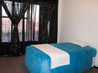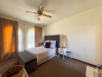 Accommodation includes two generously sized bedrooms, each featuring built-in cupboards and abundant natural light. The home offers two well-sized bathrooms, with the main en-suite featuring a bath, basin, and toilet. The second bathroom mirrors this design, ensuring convenience for family or guests.