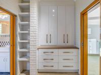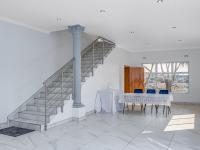 The interior boasts an open plan layout with high ceilings creating an airy and spacious ambiance. The heart of the home features a sleek modern white kitchen equipped with integrated appliances and a large island perfect for culinary enthusiasts. Four distinct lounges and four dining room areas provide ample space for both intimate gatherings and grand entertaining, further enhanced by a contemporary mezzanine level with elegant glass railings and a stylish built-in bar area.