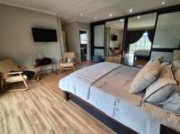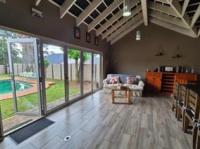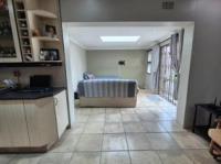 This inviting three bedroom, two bathroom residential property in Brackendowns Alberton offers a neat exterior with modern stucco walls, a tiled roof and a paved brick driveway leading to a triple garage. The spacious open plan interior features two lounges and a bar area ideal for entertaining. Large sliding doors open to the outdoor space complemented by an exposed beam ceiling. The functional kitchen provides ample counter and cabinet space, built-in appliances, a breakfast bar and a pantry.