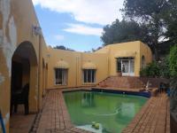 This distinctive four bedroom residence in Bassonia, Johannesburg offers a unique architectural style with prominent arched details and a warm yellow facade creating an inviting curb appeal. The property features a generous 1204 sqm Erf providing ample space for comfortable living and entertaining. Inside the home boasts spacious open plan living areas including two lounges and a dedicated dining room all featuring easy to maintain tiled flooring and ample artificial lighting. A charming fireplace adds warmth to the living space while a dedicated entertainment area with a built-in bar and pool table provides an ideal setting for social gatherings.