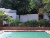 Step outside to a private oasis featuring a sparkling swimming pool and a paved patio area ideal for relaxation and outdoor entertaining. A built-in braai and established garden with palm trees create a perfect setting for al fresco dining. The property also includes staff accommodation, a double garage and additional parking catering to all practical needs. Pets are welcome.