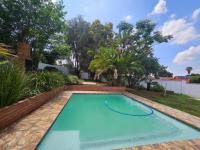 Outdoor amenities include a refreshing swimming pool, a private patio, and a well-maintained garden with a built-in braai, perfect for relaxation and entertaining. Security is comprehensively addressed with an alarm system, access gate, electric fencing, burglar bars, and security gates. This metropolitan and suburban property offers convenient access to urban amenities while providing a tranquil residential