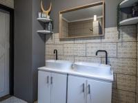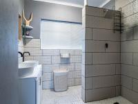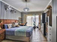Further enhancing the lifestyle offering is a dedicated entertainment room, complete with a built-in braai, a rustic bar, and a dartboard, creating an inviting atmosphere for social gatherings. This versatile space, featuring wood ceilings and special lighting, extends the home's recreational possibilities. The residence is thoughtfully designed to be wheelchair-friendly, ensuring accessibility for all.