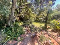 - Lush, established garden with mature trees