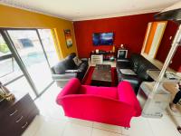 Set on a 1 554m² north-facing stand, the home welcomes you with a long red paved driveway, manicured lawn, mature trees and a charming gated entrance. Step inside to enjoy the seamless open plan layout connecting the lounge, TV room, dining area, and indoor bar perfect for hosting and family gatherings.