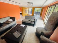 The modern kitchen is fitted with sleek cabinetry, granite style countertops, an electric hob with an eye level oven, and generous appliance space. Five well appointed bedrooms and three bathrooms, including an ensuite main, provide comfortable living for a big family.