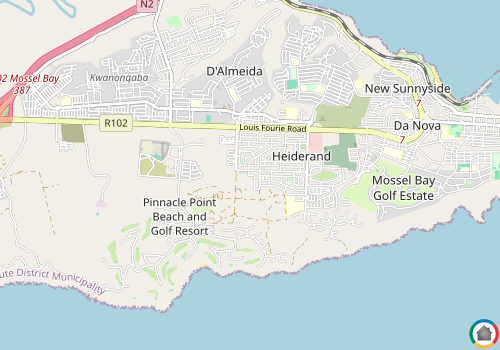 Albertinia , Bay View , Boggoms Bay , Brandwacht , Dana Bay , De Nova , Fairview , Gouritz (Gouritsmond) , Hartenbos , Heiderand , Kwanonqaba , Linkside , Moquini Coastal Estate , Mossel Bay , Mossel Bay Golf Estate , Nautilus Bay , Santos Bay , Vleesbaai , Vyf Brakke Fonteinen , Witsand