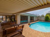 Step outside to discover a private oasis featuring a refreshing swimming pool, perfect for relaxation and recreation. The established garden and paved driveway enhance the property's appeal, complemented by an awning for outdoor enjoyment. Parking is abundant with two garages and four additional parking spaces. The inclusion of a flatlet and outside toilets adds significant versatility, ideal for extended family or potential rental income. Pets are welcome, making this a true family home.