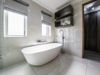 This residence offers four comfortable bedrooms and three and a half bathrooms, including two en-suite facilities and a convenient guest toilet. The bathrooms feature modern floating vanities and neutral-toned tiled surfaces, ensuring both style and functionality. A dedicated study provides an ideal space for work or quiet contemplation.