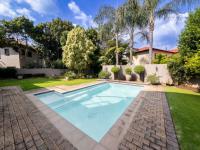Outdoor living is equally impressive, with a private swimming pool set within a large, well-maintained lawn, offering a serene escape. A covered patio provides an ideal spot for al fresco dining and entertaining, while an upper-level balcony extends the outdoor enjoyment. The property also benefits from three garages, staff quarters, and a garden.