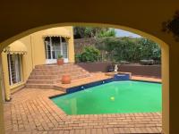 Outdoor living is a breeze here, with multiple balconies offering scenic views and perfect spots for your morning coffee or evening sundowners. The property includes a refreshing pool, ideal for those hot South African days, and a well-maintained garden. Parking is never an issue with a generous paved driveway and two garages, ensuring plenty of space for vehicles.