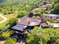 Totally of the grid equipped with solar and an inverter system, this beautiful home is situated in a quiet cul de sac and offers two separate living spaces. The main house consists of two bedrooms with two full bathrooms, a fully fitted kitchen, a separate scullery, a spacious open-plan dining room, a lounge, a study, and an entertainer's area with a beautiful view of the Hartbeespoort dam.
