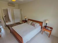 The second bedroom includes built in cupboards and its own bathroom. This bathroom includes a shower with good space, a toilet and a basin. It supports guests or family with a private, practical [hidden] open plan kitchen, dining area and lounge create a bright living space. Wooden tops, an eye level oven, a centre island and a dishwasher connection support simple everyday use. Direct access to the patio makes the home suited for relaxed hosting.