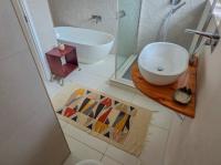 This third floor apartment delivers a calm coastal style with a clean, modern layout. Fully tiled floors keep the space sleek from room to room. The undercover patio opens to wide sea views that shape quiet mornings and slow afternoons. The courtyard adds another outdoor corner suited for plants or a small seating setup. The main bedroom offers generous space with built in cupboards and an open plan bathroom designed for comfort. It includes a full sized bath for slow evenings, a separate shower for daily use, a toilet and a basin. The layout keeps the room open, bright and easy to move through.