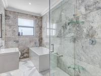 Outside, the property transforms into a private resort. A sparkling swimming pool, expansive deck, and inviting patio create an idyllic setting for outdoor leisure and entertaining, further enhanced by a dedicated braai room and lapa. The meticulously manicured garden and extensive paving complement the home's striking kerb appeal, featuring modern stone cladding, vast glass facades, and sleek balconies. With four automated garages and ten additional parking spaces, accommodation for vehicles is effortlessly managed. Indulge in a private gym and squash court, offering exclusive recreational opportunities. Staff quarters and domestic rooms ensure seamless household management.