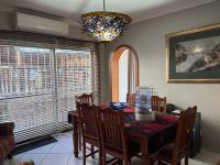 The neat, irrigated garden is enhanced by a borehole and includes a lapa overlooking a sparkling swimming pool—ideal for entertaining. A storage shed adds further convenience, while the spacious front porch offers charming views of the surrounding neighborhood and leads into a welcoming entrance hall.