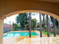 This distinguished two-story residence in Zwartkop, Centurion, presents a commanding street presence with its traditional red tiled roof, secure perimeter fencing, and a paved driveway flanked by mature trees. Upon entry, the home reveals a meticulously appointed interior featuring durable tiled flooring throughout. The ground floor encompasses an inviting entrance hall, two spacious lounges, a dedicated dining room and a stydy/office area, all benefiting from abundant natural light. A versatile multi-functional room, currently configured as a home office, offers direct outdoor access and includes a fireplace, enhancing its utility.