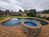 Outside your private oasis awaits! Imagine sunny days by the large custom shaped swimming pool with its integrated hot tub surrounded by extensive brick paving – perfect for entertaining or just chilling out. The well maintained garden and patio with a built-in braai are ready for your outdoor gatherings. You will also find outside toilets, a double garage and three additional parking spaces. Pets are welcome here too!