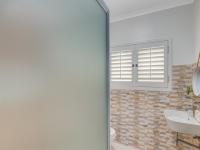 Plantation shutters frame the windows throughout the home, adding a timeless sophistication and privacy.