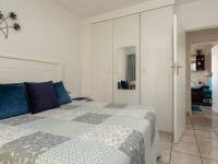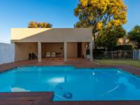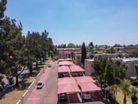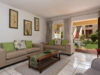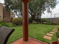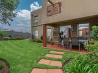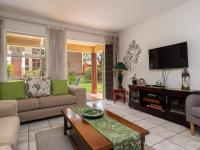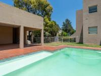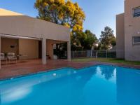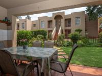Outside, a well-maintained private garden awaits, complete with a lush lawn and stepping stones. The covered outdoor patio is ideal for al fresco dining and relaxation, offering a seamless indoor-outdoor flow from the living area. Residents also benefit from access to a communal pool, perfect for enjoying sunny South African days. Two dedicated parking spaces are provided.