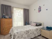 Located within a secure complex, this home offers peace of mind with security features including burglar bars on windows. Modern connectivity is ensured with fibre internet readily available, catering to contemporary lifestyle needs. The property presents a neat kerb appeal with its two-story building design and light-colored, textured exterior, complemented by a well-kept garden.