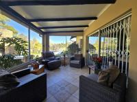 This residence boasts four comfortable bedrooms and two bathrooms, including one ensuite for added privacy. Each bedroom offers natural light, with some featuring practical built-in wardrobes and shelving. The diverse flooring includes durable tiles and modern wood-look options, catering to various preferences. Burglar bars on windows enhance security while maintaining bright interiors.