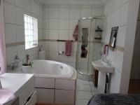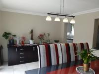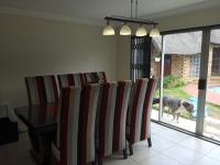 Step outside to a private oasis perfect for relaxation and entertaining. The property features a sparkling swimming pool with brick coping. A charming thatched lapa provides shaded outdoor shelter for al fresco dining or social gatherings. The dedicated entertainment area, complete with a pool table and built-in bar, promises endless fun. A well-maintained garden and patio, accessible via modern sliding glass doors, seamlessly blend indoor and outdoor living.