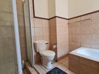 Accommodation comprises three well-appointed bedrooms and three bathrooms, including a private en-suite and a guest toilet. The meticulously maintained outdoor spaces feature neat brick paving and a garden, suitable for pet owners. Security is paramount, with the residence benefiting from its location within a gated community and security complex, further enhanced by an alarm system, electric fencing, and an access gate. The property is totally walled, ensuring privacy. Equipped with water tanks and fibre ready, this home addresses modern lifestyle demands.