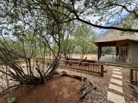 Step outside to embrace the quintessential bushveld lifestyle. The property features an expansive wooden deck, perfect for relaxation and entertaining, complemented by a refreshing plunge pool. A covered patio, lapa, and built-in braai area provide ideal settings for outdoor dining and social gatherings, all set within a private garden with scenic views. Comfort is assured with air conditioning throughout and a cosy fireplace for cooler evenings. Additional practicalities include a laundry area and ample storage.