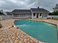 This substantial home comprises five spacious bedrooms, ensuring comfortable accommodation for a large family. There are three bathrooms in total, including a private en-suite bathroom for added convenience and a guest toilet. The property's outdoor amenities are equally appealing, featuring a refreshing swimming pool perfect for warm South African days, set within a well-maintained garden. Paved areas and a long driveway lead to two garages and six additional parking spaces, accommodating multiple vehicles with ease. Pets are welcome, making this an ideal home for animal lovers.