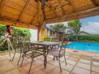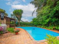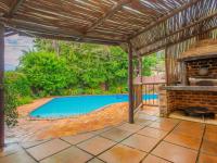 The back garden is your private oasis, featuring a covered patio with built in braai, overlooking a large sparkling swimming pool and a lapa, perfect for entertaining family and friends on sunny days.