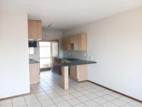 Discover this inviting 2-bedroom, 1-bathroom apartment located within a secure estate in Boksburg. Spanning 50 square meters, this unit features an open-plan living area seamlessly connecting to a functional kitchen. The kitchen is equipped with built-in light wood cupboards, dark countertops, a breakfast bar, and a hob with an oven, providing a practical space for daily living. Tiled flooring extends throughout the apartment, offering durability and ease of maintenance, while large windows ensure ample natural light.