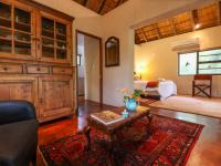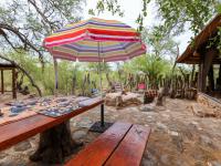 On the far side of the property lies your own rustic private bush camp, this is the true authentic, close-up wilderness experience everybody dreams of. Here you’ll find four huts, one with ensuite bathroom, and the others share two outside showers and outdoor toilets. Complete with a communal living area, kitchen, and a braai / boma area overlooking a small dam and a dry riverbed—prime and peaceful game viewing for family and [hidden];