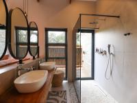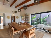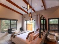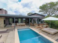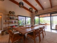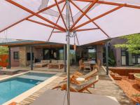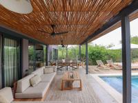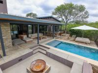 Discover an exceptional modern residence designed for luxurious bushveld living within the prestigious Zandspruit Bush & Aero Estate in Hoedspruit. This property boasts a striking contemporary architectural design with clean lines and high-quality finishes, offering seamless indoor-outdoor flow through expansive sliding glass doors. The open-plan layout integrates a spacious lounge, dining area, and a well-appointed kitchen featuring a pantry, all complemented by air conditioning for year-round comfort. A dedicated study provides a versatile space for work or relaxation.