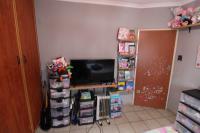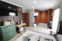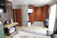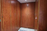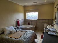 The bedroom features built-in cupboards and an open-plan bathroom.