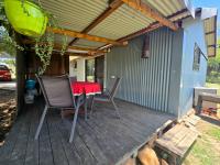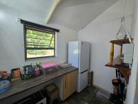A modern open-plan lounge and kitchen with sleek black cabinetry and a mosaic backsplash two bedrooms, two bathrooms (each with shower, toilet, and basin) and an enclosed verandah with a built-in braai - perfect for year-round entertaining.